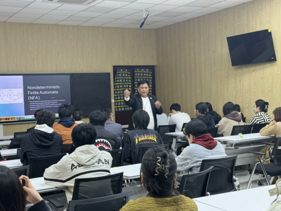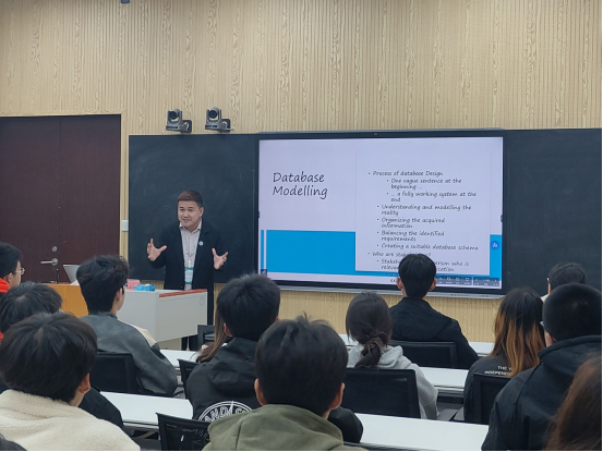 格里·康提罗和迈克尔·布拉克两位专家在明理楼智慧教室分别为本科生上课。格里·康提罗以“自动机理论”为题给学生讲解了正则表达式的应用。他以标志符识别为引入,讲解了有效及无效的各类情况,通过画图和举例相结合的方式,生动形象地阐释了这一原理。迈克尔·布拉克以“数据库建模”为题为学生普及了数据库设计过程、数据库建模概念和术语以及建模的具体步骤。师生之间互动频繁,讲解深入浅出,学生们加深了对数据库建模相关领域的了解。