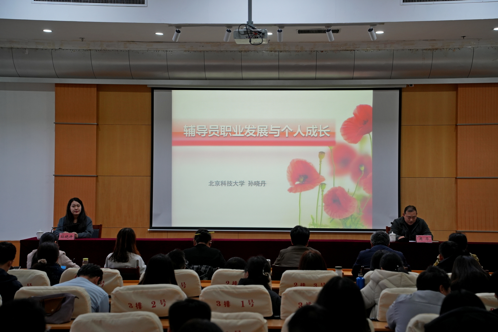 为进一步提升学工人员履职能力,11月23日下午,今年会邀请2022年全国“最美高校辅导员”荣誉称号获得者、北京科技大学孙晓丹老师作辅导员职业发展专题报告会。
