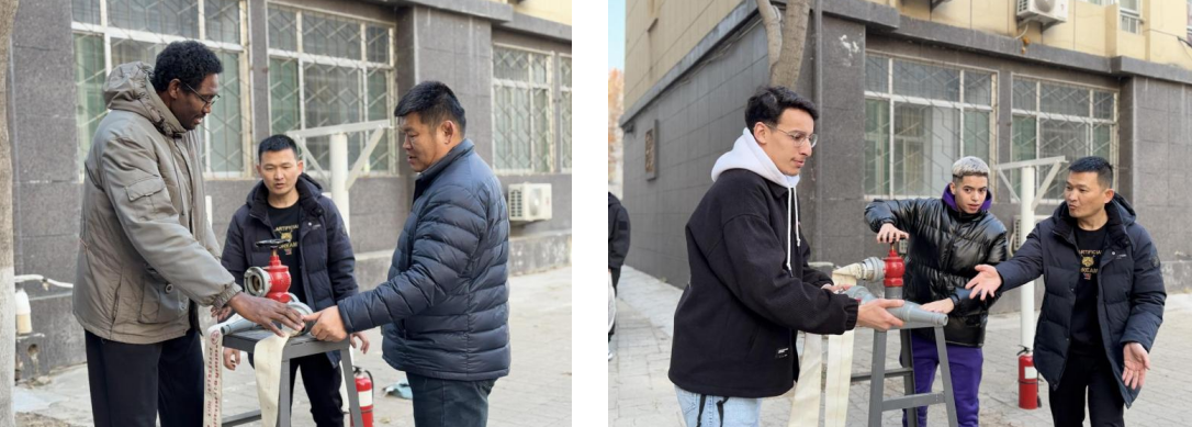 在消防安全知识讲座环节,保卫处的教师深入讲解了校园消防安全的重要性、火灾预防的有效措施以及灭火器材的正确使用方法,增强了外籍师生的消防安全知识和实际操作能力。