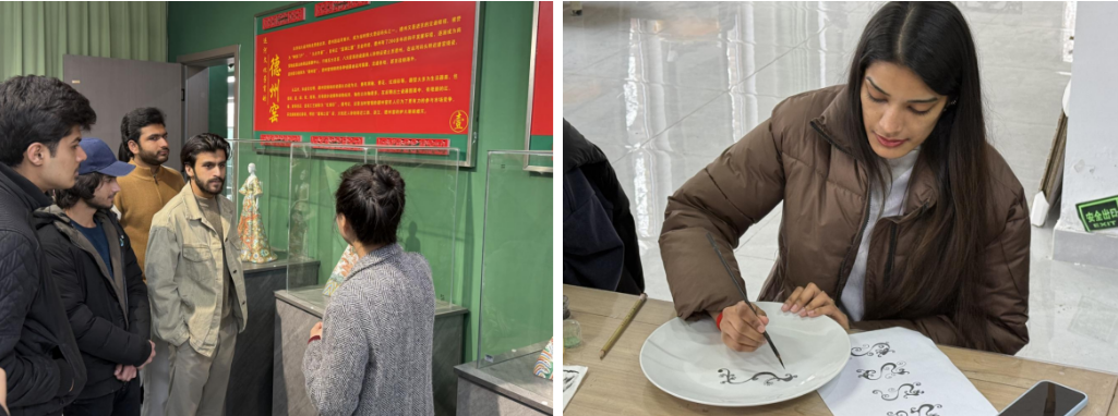 最后一站在德州窑红绿彩博物馆,探索红绿彩瓷的千年历史。在工作人员的指导下,留学生们在素坯上自由创作,将独具特色的设计与中国传统纹样结合,展现了别出心裁的创作灵感。