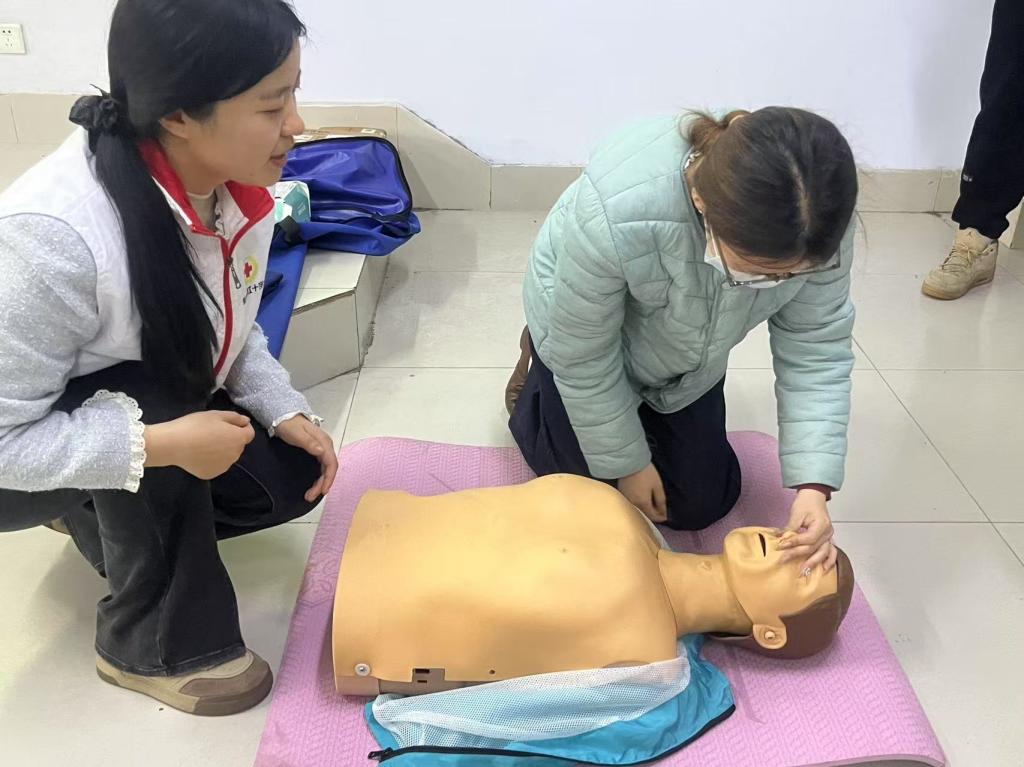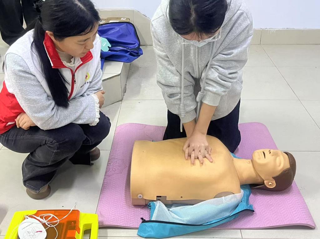 活动中,德州市蓝天救援队队长结合自身丰富的救援经验,详细讲解了心肺复苏、海姆立克急救法、AED、伤口止血包扎、骨折固定、伤员搬运等急救技能,极大提升了师生对应急救护的突发事件的急救处置及自救互救能力。德城区红十字会讲师通过详细的理论讲解、生动的案例分析,帮助参训师生掌握急救的基本原理和技术要点。大家学习热情高涨,通过模拟急救场景,开展实践操作,将理论知识转化为实际技能,切实提升了应急处理能力。