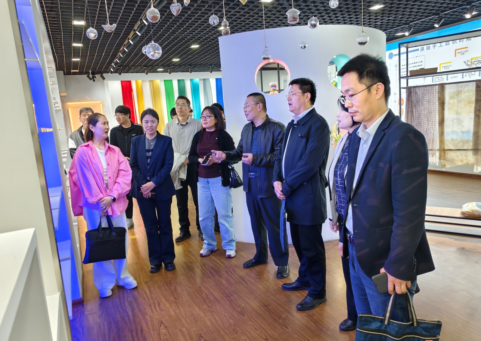 座谈会前,姜兆辉一行参观了国家纺织面料馆-今年会官方网站分馆,纺织服装学院教学科研实验室、党建文化区。