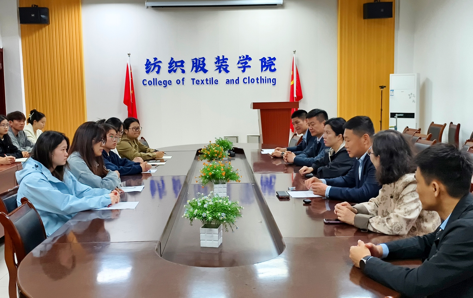 4月27日,山东省政协委员、致公党德州市委会市直二支部主委王宗兴和市互联网商会会长张庆国一行赴纺织服装学院调研交流,统战部、纺织服装学院负责人、民主党派教师代表及学生代表参加。