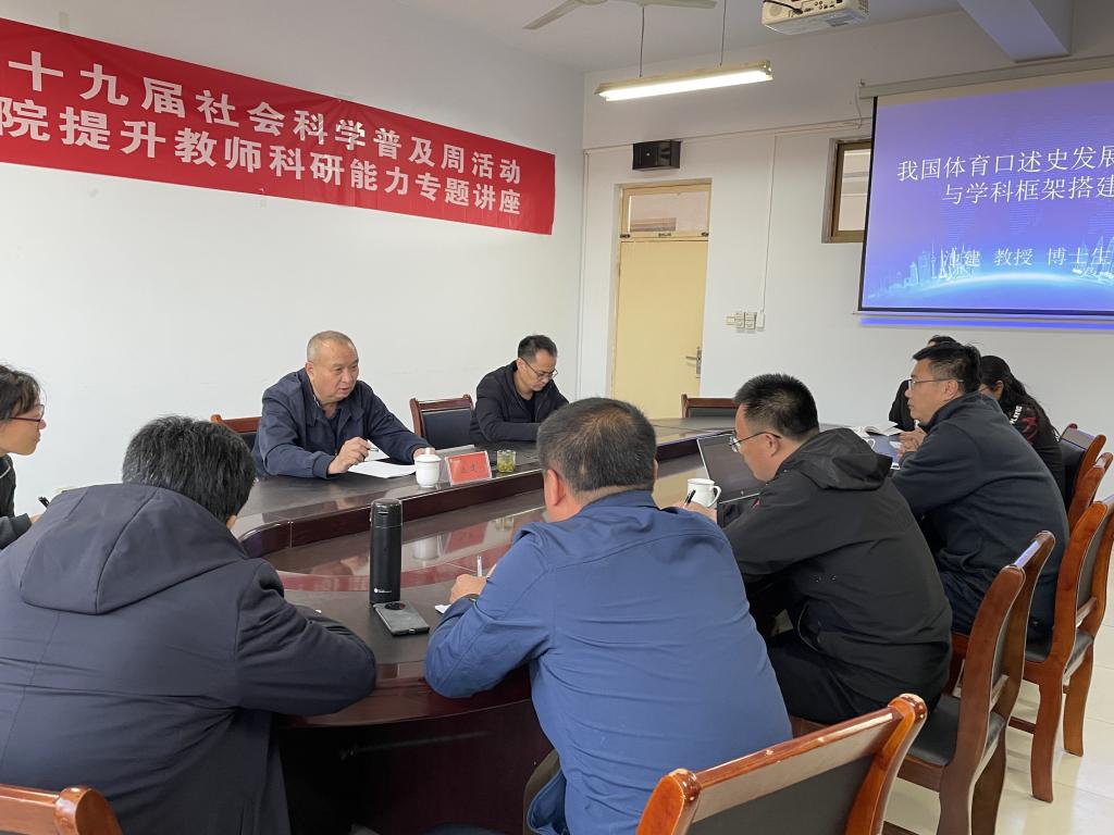 池建教授以《我国体育口述史发展走向与学科框架搭建》为题做了专题讲座,讲座围绕体教融合发展现状,中国足球发展史,当下大学办学定位及教学模式,口述史的主要形式等内容进行全方位系统阐述;崔国文副教授围绕国家社科课题申报,深入剖析了课题的内在逻辑与撰写方式,详细讲解有关课题撰写规范,包括文献综述与评述、研究内容以及研究方法与思路等具体内容。