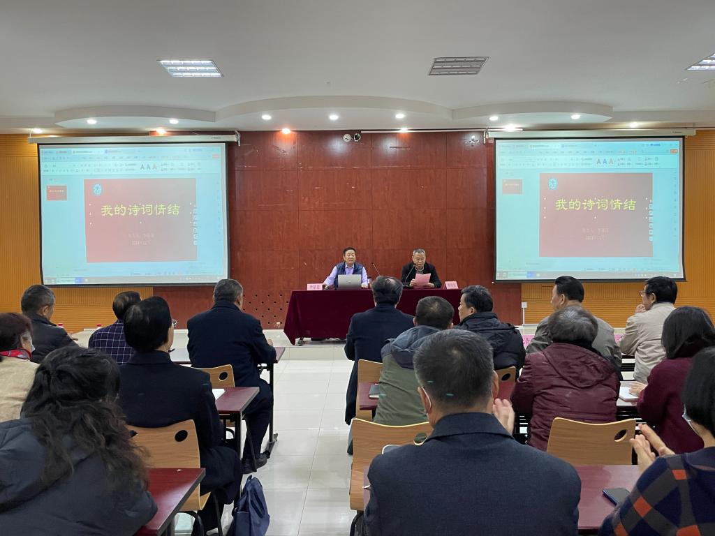 为深入学习、贯彻习近平文化思想,弘扬优秀传统文化,深化专业知识,11月17日,文学与新闻传播学院邀请中华诗词学会学术部原副主任李葆国先生来校作学术报告。德州市诗词协会会长张清昌携市诗词协会五十余名会员到会,与文学与新闻传播学院相关专业教师、2022级汉语言文学专业全体同学一起聆听了报告,文学与新闻传播学院负责人主持了报告会。