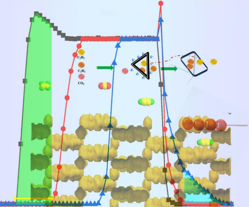 天然气的主要成分是甲烷,另外还含有少量的乙烷(C2)和丙烷(C3)等气体杂质。为了满足行业标准,天然气中的杂质须在运输及使用前去除掉。因此,有效地捕获天然气中的丙烷和乙烷非常重要。乙烯(C2H4)作为石化工业中一种极为重要的化学品,2020年全球产量已超过2亿吨。目前,乙烯的主要生产方式是碳氢化合物的蒸汽裂解,其中乙炔(C2H2)和二氧化碳(CO2)不可避免地作为下游副产物共存。