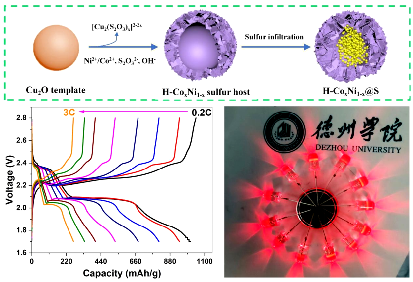 近日,化学化工学院耿龙龙副教授、李振博士和李清博士等合作,发挥山东省青创团队学科交叉优势,在高性能多硫化锂电催化剂设计与构筑方面取得重要进展,相关研究成果以“One-step synthesis of hollow spherical Co/Ni hydroxides as multifunctional polysulfide mediators to steer sulfur redox kinetics for high performance lithium-sulfur batteries”为题发表在国际知名期刊《Journal of Materials Chemistry A》(IF:10.7,TOP期刊)。