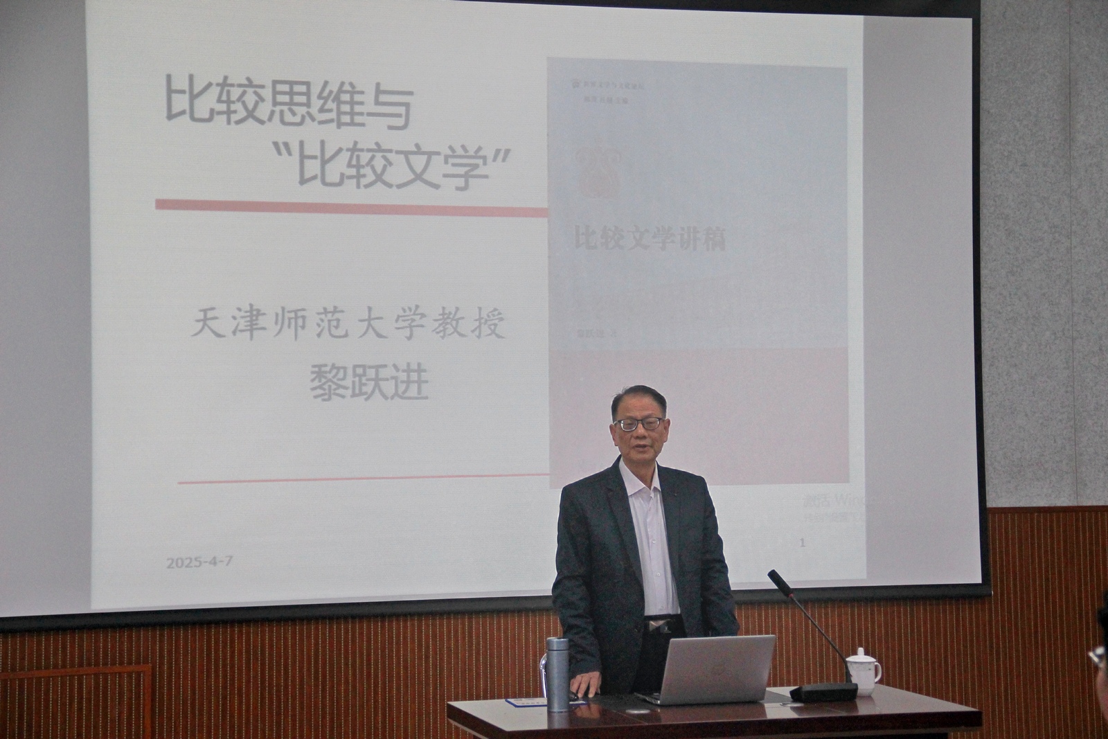 为深入探讨比较思维在人类认知中的基础性作用,以及比较文学作为一门独立学科的核心内涵与研究方法,4月7日下午,文学与历史文化学院在博文楼528报告厅举办了比较思维与“比较文学”专题学术讲座,本次讲座特邀天津师范大学二级教授黎跃进担任主讲人。文学与历史文化学院师生、董仲舒书院师生参加学术报告。