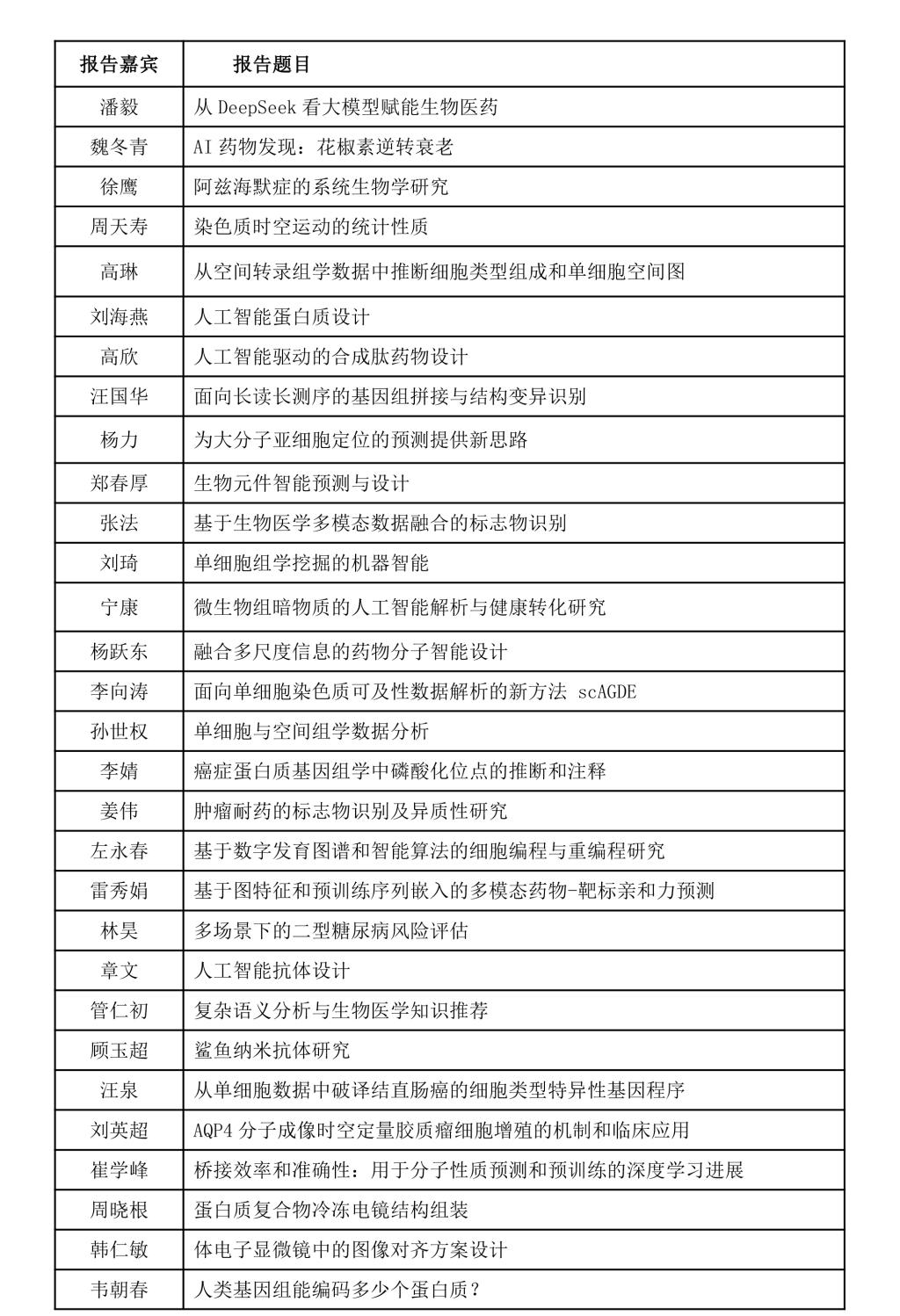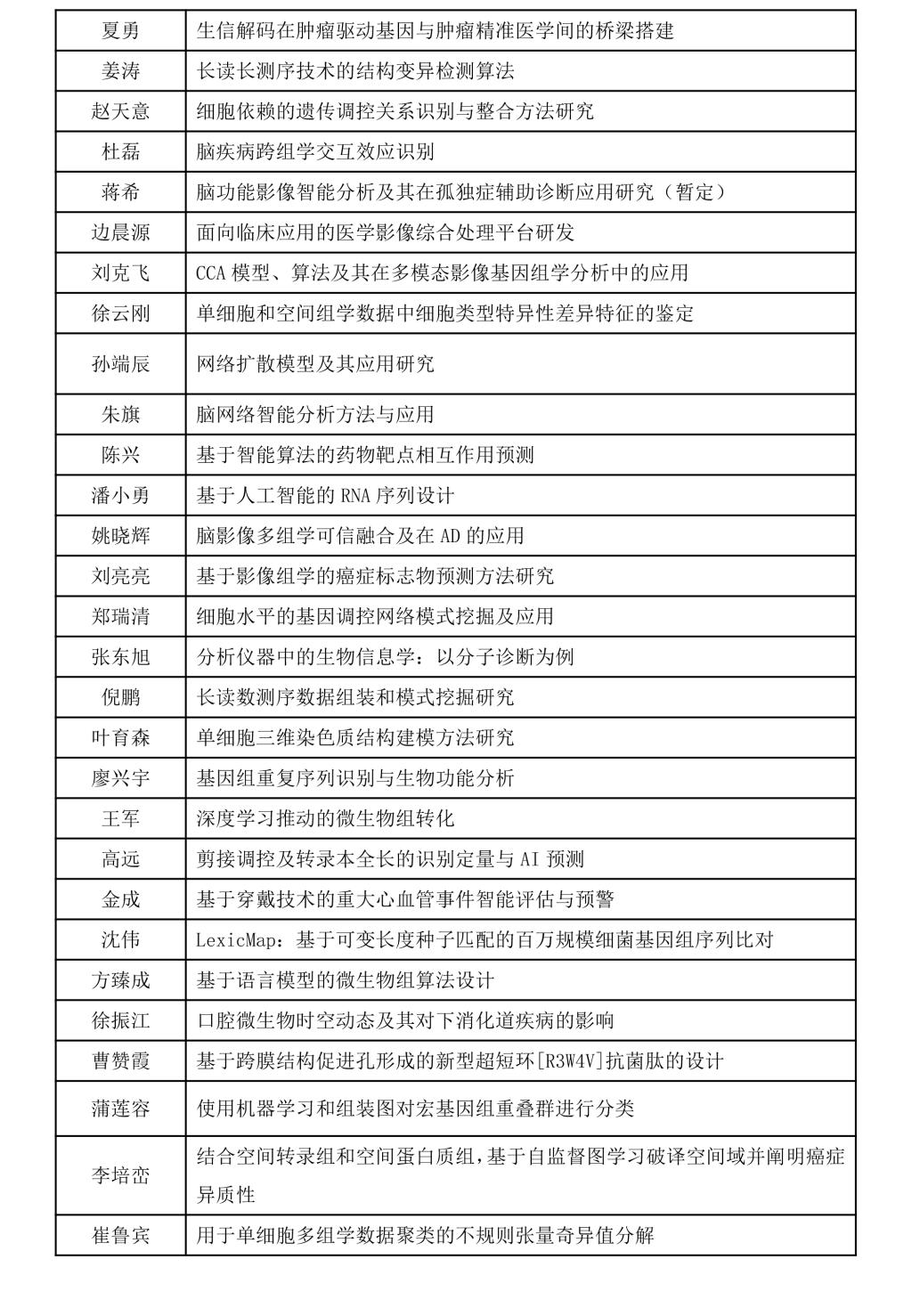 本次大会的主题为:大语言模型与生物医学大数据,会议将围绕生物信息学的前沿热点问题、关键算法突破、计算技术创新等方向,汇聚国内外专家学者,共同探讨生物信息学领域的新理论、新方法、新技术及其在生命科学研究中的应用。会议将安排特邀报告、大会报告、分会场报告80余个,预计参会人数300-500人。生命科学学院2023级生物信息学专业全部学生以专业实习方式参加会议,诚邀全校相关学科、专业师生参加盛会。部分报告题目如下: