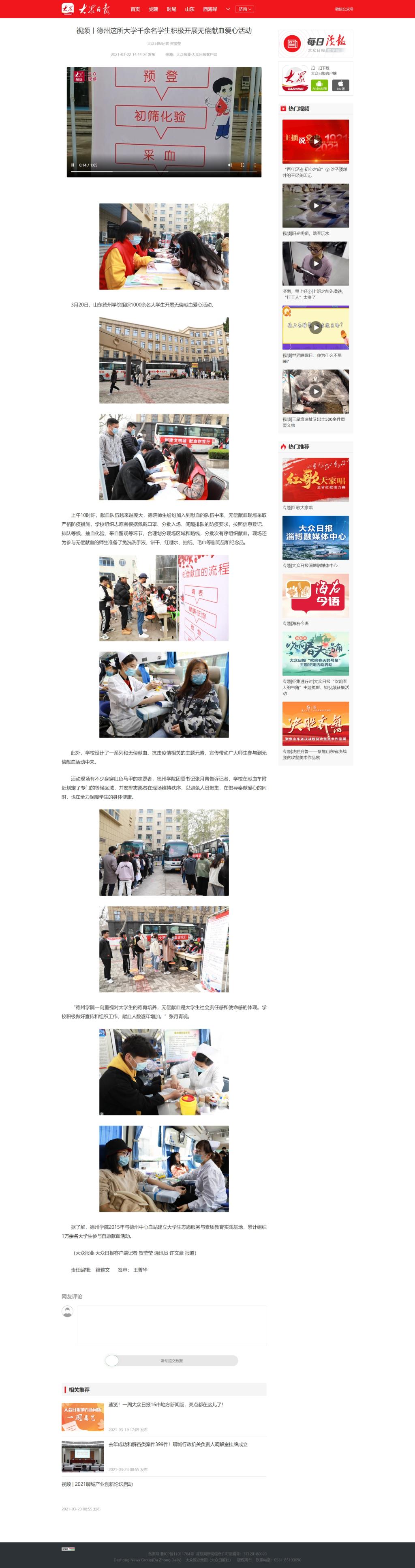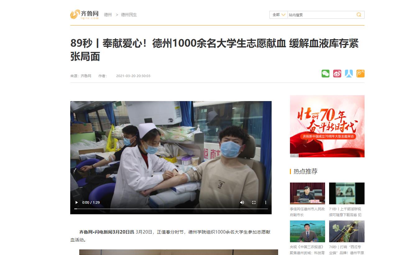 【大众日报、山东广播电视台、山东教育发布】今年会官方网站大学生无偿献血爱心活动