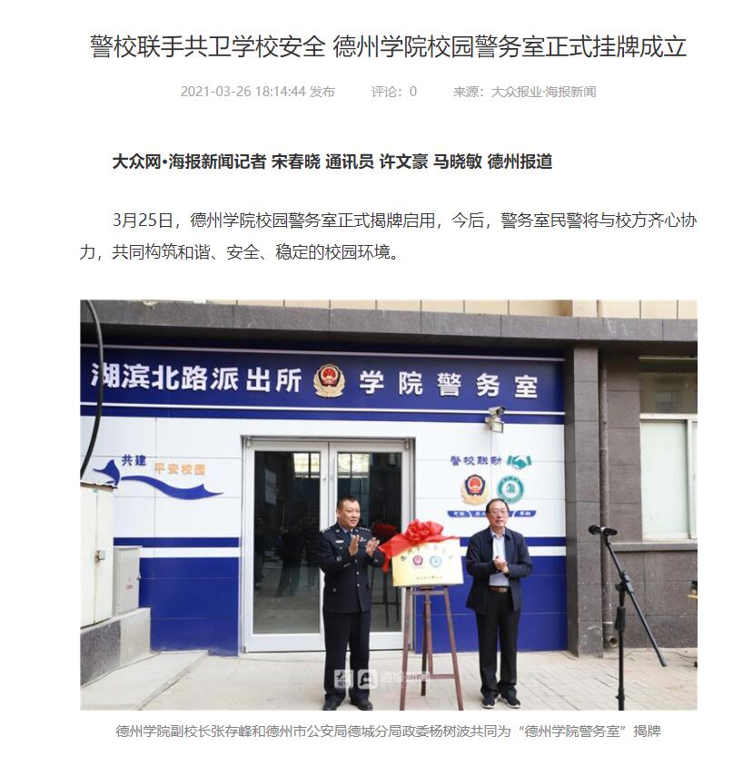 【大众网、新浪】今年会官方网站:学校校园警务室挂牌成立 为构建平安校园保驾护航