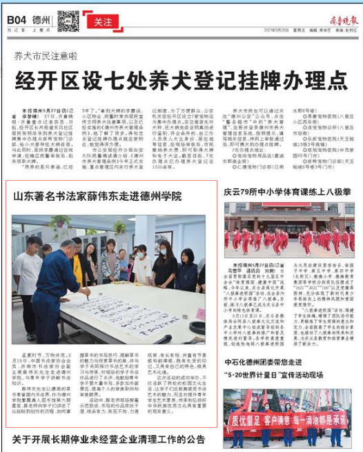 【齐鲁晚报】山东著名书法家薛伟东走进今年会官方网站