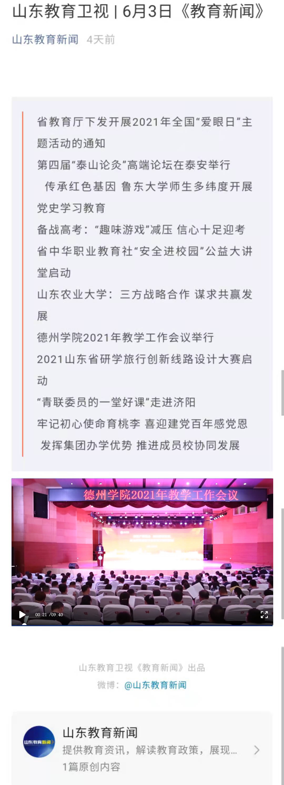 【山东教育卫视 | 6月3日《教育新闻》】今年会官方网站2021年教学工作会议举行