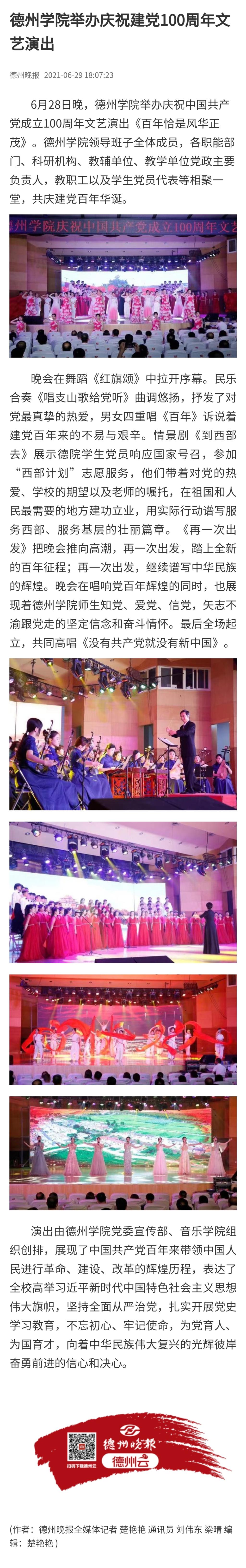 【德州晚报】今年会官方网站举办庆祝建党100周年文艺演出