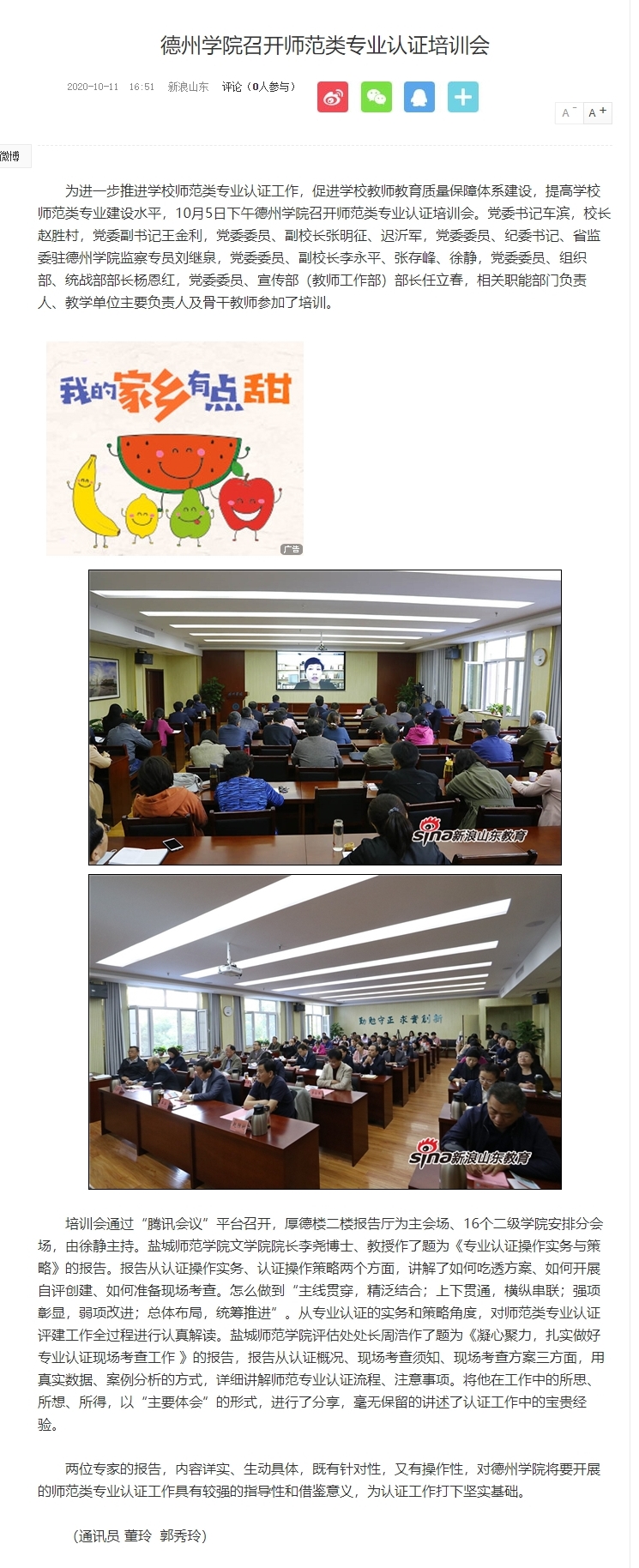 【新浪网】今年会官方网站召开师范类专业认证培训会