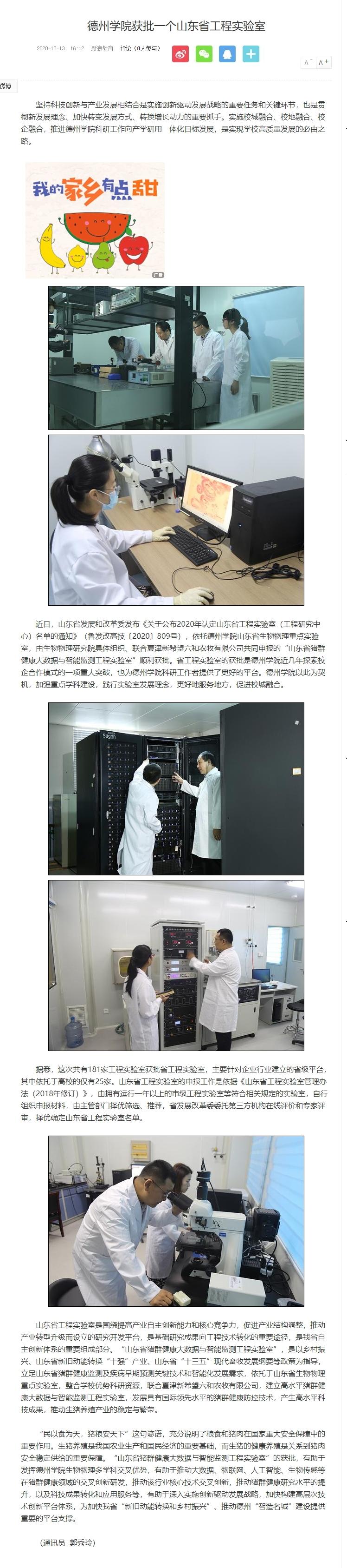 【新浪网】今年会官方网站获批一个山东省工程实验室