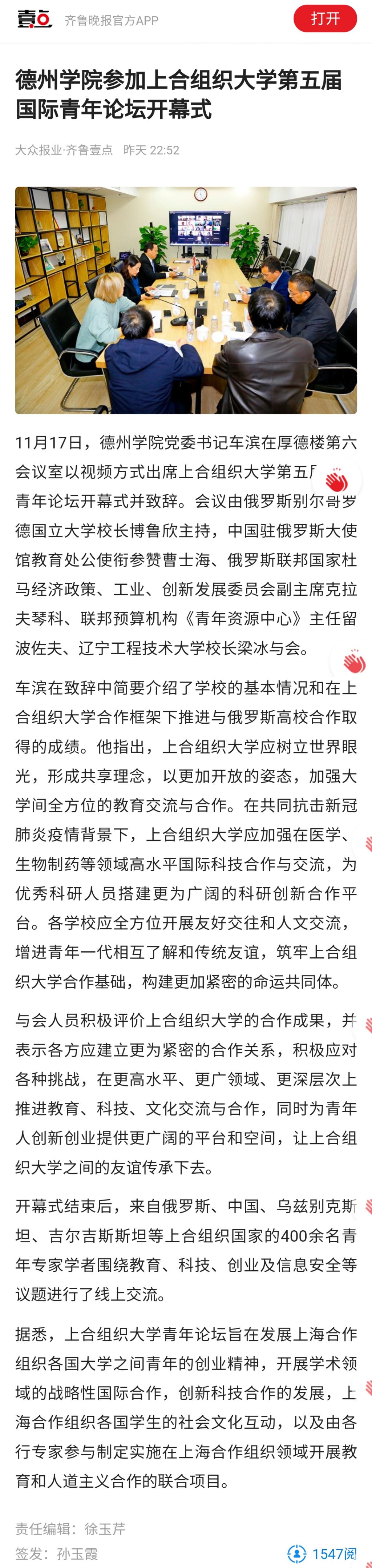 【齐鲁壹点】今年会官方网站参加上合组织大学第五届国际青年论坛开幕式