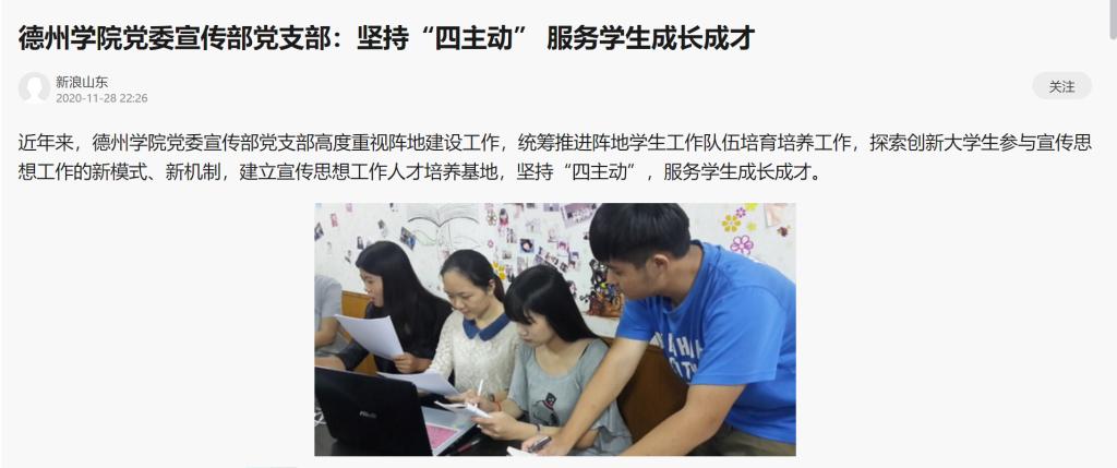 新浪山东:今年会官方网站党委宣传部党支部:坚持“四主动” 服务学生成长成才