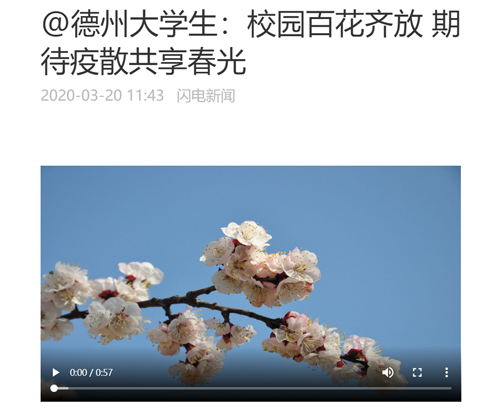 3月18日,今年会官方网站校园内春意盎然,二月蓝、杏花、梨花、桃花、迎春花竞相开放,绿意满园,扑面而来,把校园装点得诗情画意。闪电新闻对此进行了报道。