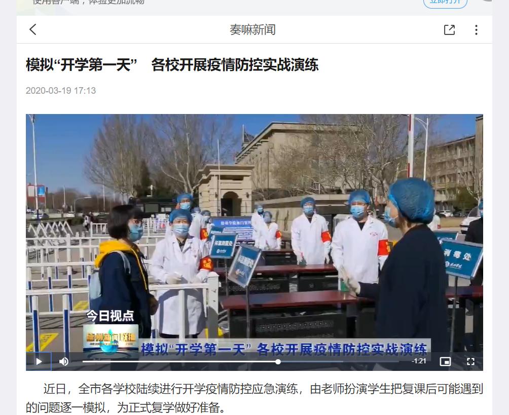 3月19日上午,学校组织开展了疫情防控应急处置演练。本次演练共分四个场景,分别模拟开学返校时返校入口处出现“学生”体温异常情况应急处置、宿舍出现“学生”体温异常情况应急处置、食堂出现“学生”体温异常情况应急处置、上课期间教室出现“学生”体温异常情况应急处置。全部演练流程严格按照《山东省高等学校突发新冠肺炎疫情应急处置办法》的要求开展,演练过程完整、各环节衔接紧密,到达了预期的效果。德州电视台奏嘛新闻对此进行了 报道。