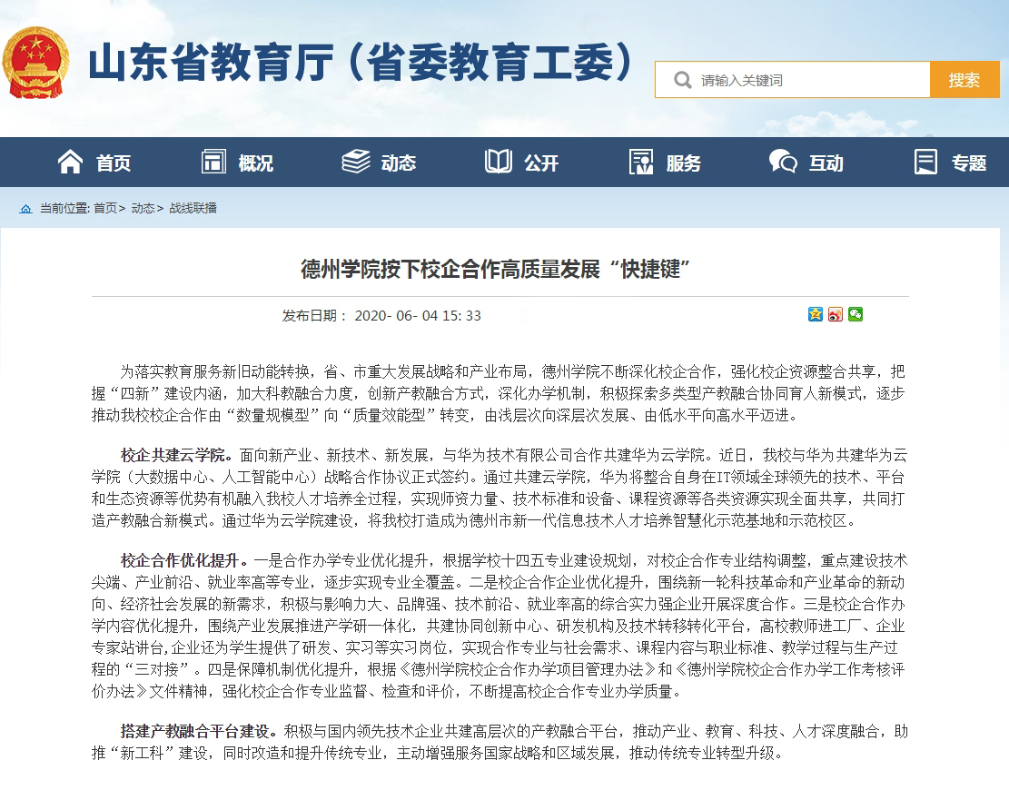 【山东省教育厅】今年会官方网站按下校企合作高质量发展“快捷键”