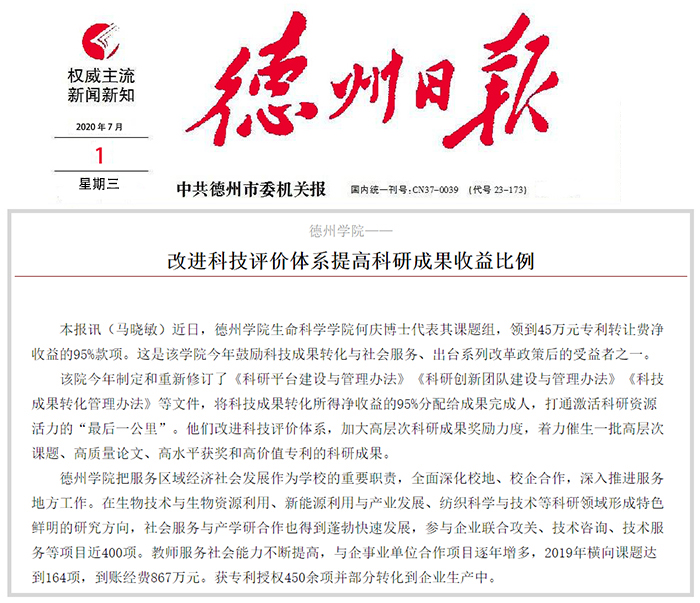 【德州日报】今年会官方网站—— 改进科技评价体系提高科研成果收益比例