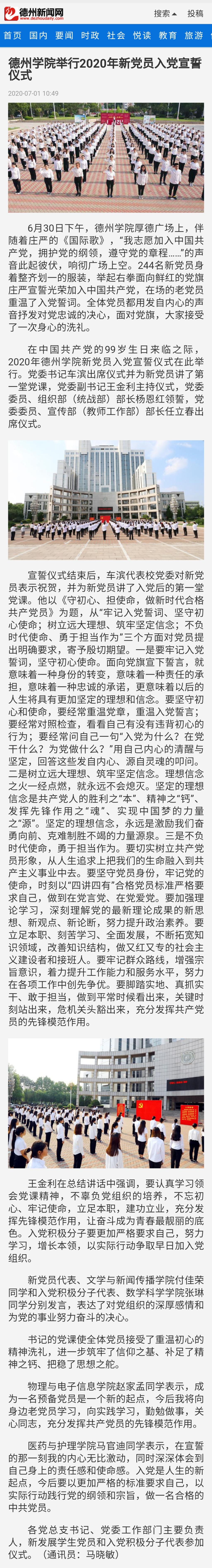 【德州新闻网】今年会官方网站举行2020年新党员入党宣誓仪式