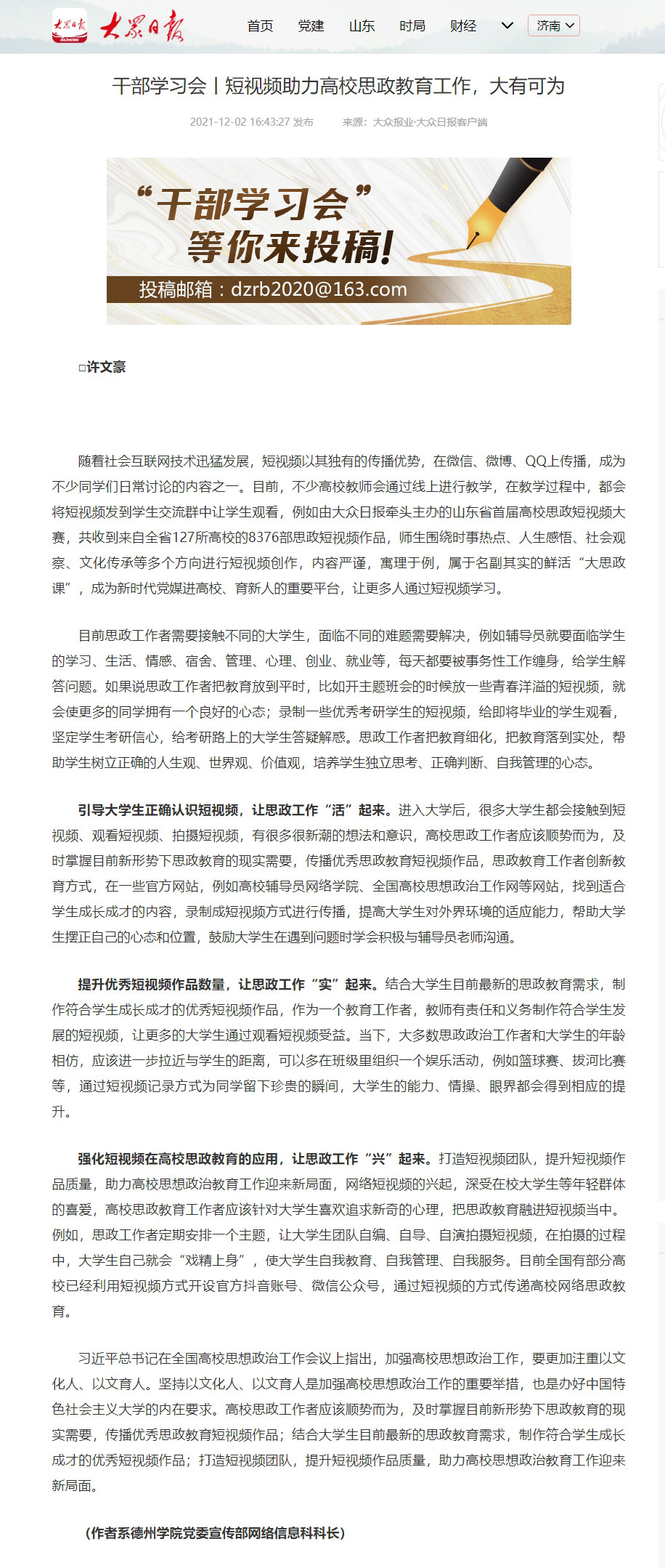 今年会学生入选山东省师范生“我的教师梦”主题演讲活动优秀人员