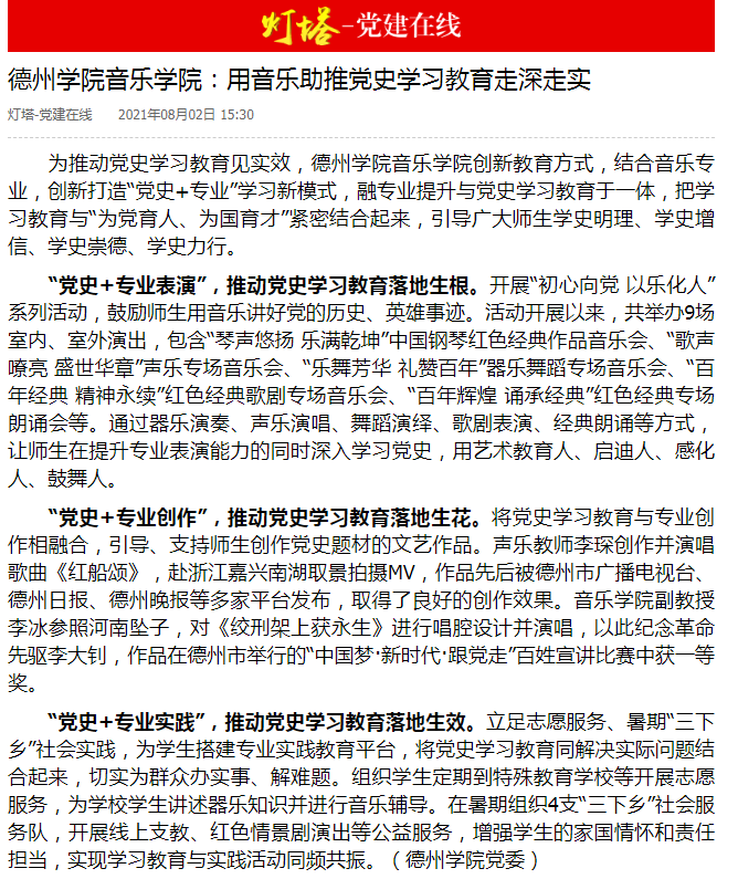 【灯塔党建在线】今年会官方网站音乐学院:用音乐助推党史学习教育走深走实