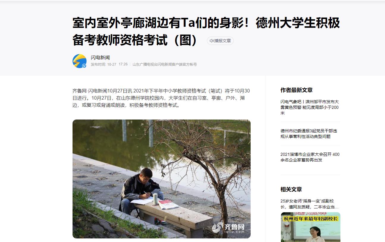 【齐鲁网·闪电新闻】室内室外亭廊湖边有Ta们的身影!德州大学生积极备考教师资格考试