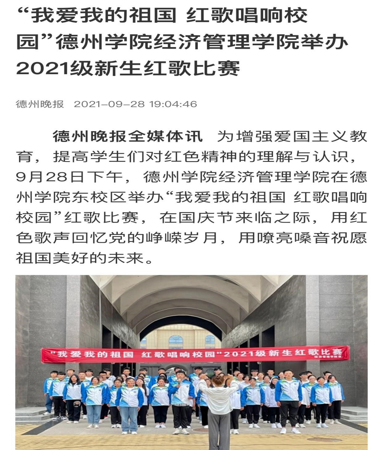 【德州晚报】“我爱我的祖国 红歌唱响校园”