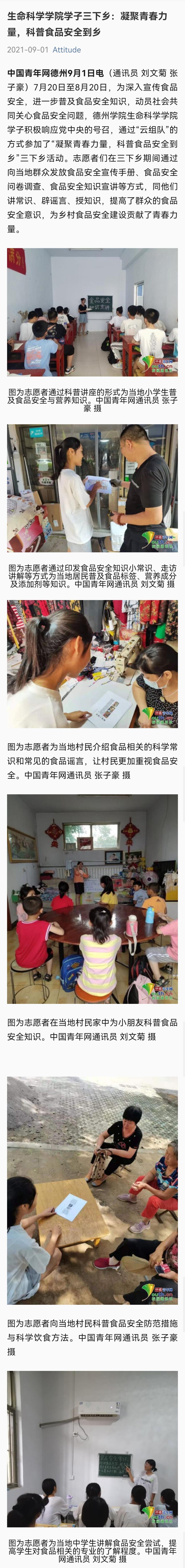 【中国青年网】生命科学学院学子三下乡:凝聚青春力量,科普食品安全到乡