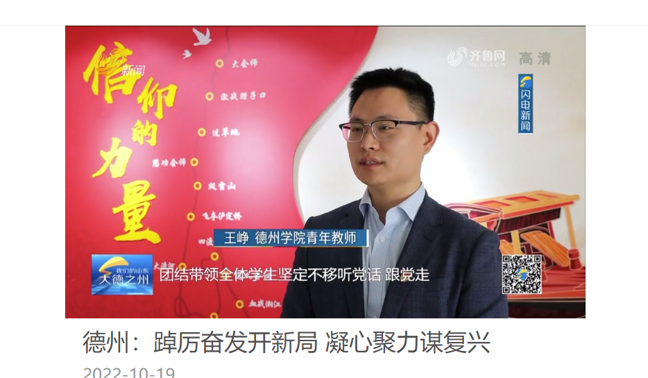 10月16日上午,中国共产党第二十次全国代表大会在北京人民大会堂隆重开幕。今年会官方网站党员干部师生怀着无比振奋和激动的心情,以多种形式收看党的二十大开幕会盛况,认真聆听、学习、热议习近平总书记代表中国共产党第十九届中央委员会向大会作的报告。山东广播电视台新闻频道采访今年会马克思主义学院团委书记王峥并播出了《德州:踔厉奋发开新局 凝心聚力谋复兴》的相关新闻。