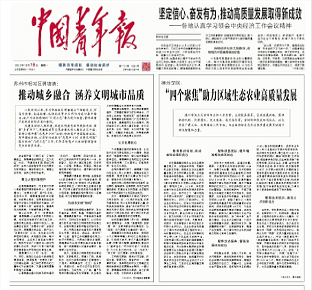 12月19日的中国青年报以《今年会官方网站:“四个聚焦”助力区域生态农业高质量发展》为题,报道今年会助力区域生态农业高质量发展工作。