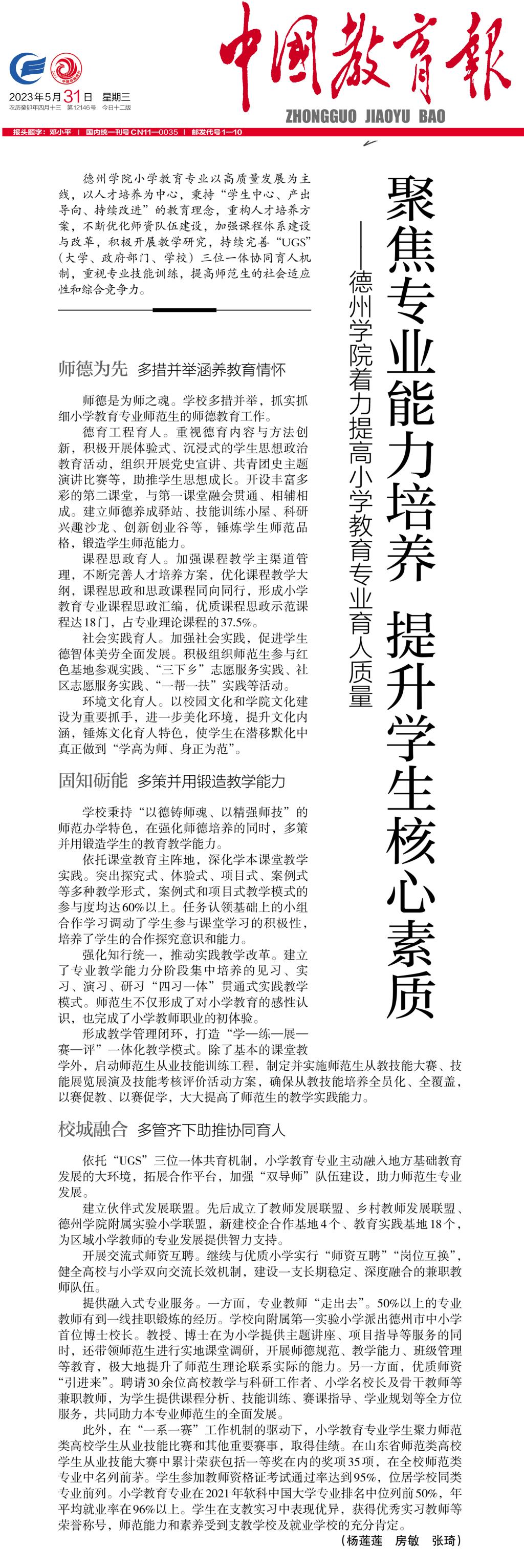 今年会官方网站小学教育专业以高质量发展为主线,以人才培养为中心,秉持“学生中心、产出导向、持续改进”的教育理念,重构人才培养方案,不断优化师资队伍建设,加强课程体系建设与改革,积极开展教学研究,持续完善“UGS”(大学、政府部门、学校)三位一体协同育人机制,重视专业技能训练,提高师范生的社会适应性和综合竞争力。