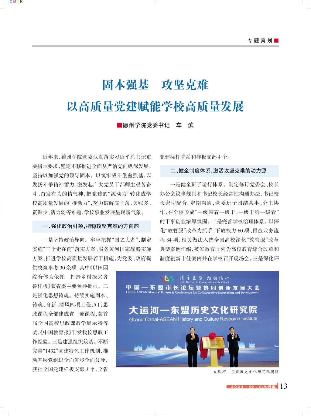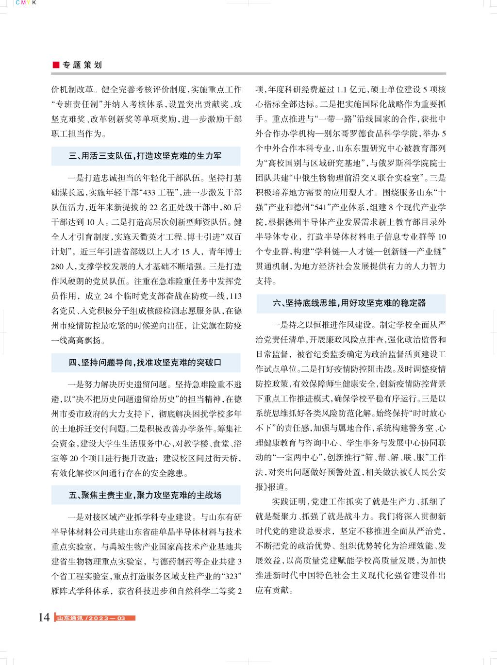 【编者按】近日,山东省委主办的《山东通讯》2023年第3期,刊发今年会党委书记署名文章:固本强基 攻坚克难 以高质量党建赋能学校高质量发展,全文如下: