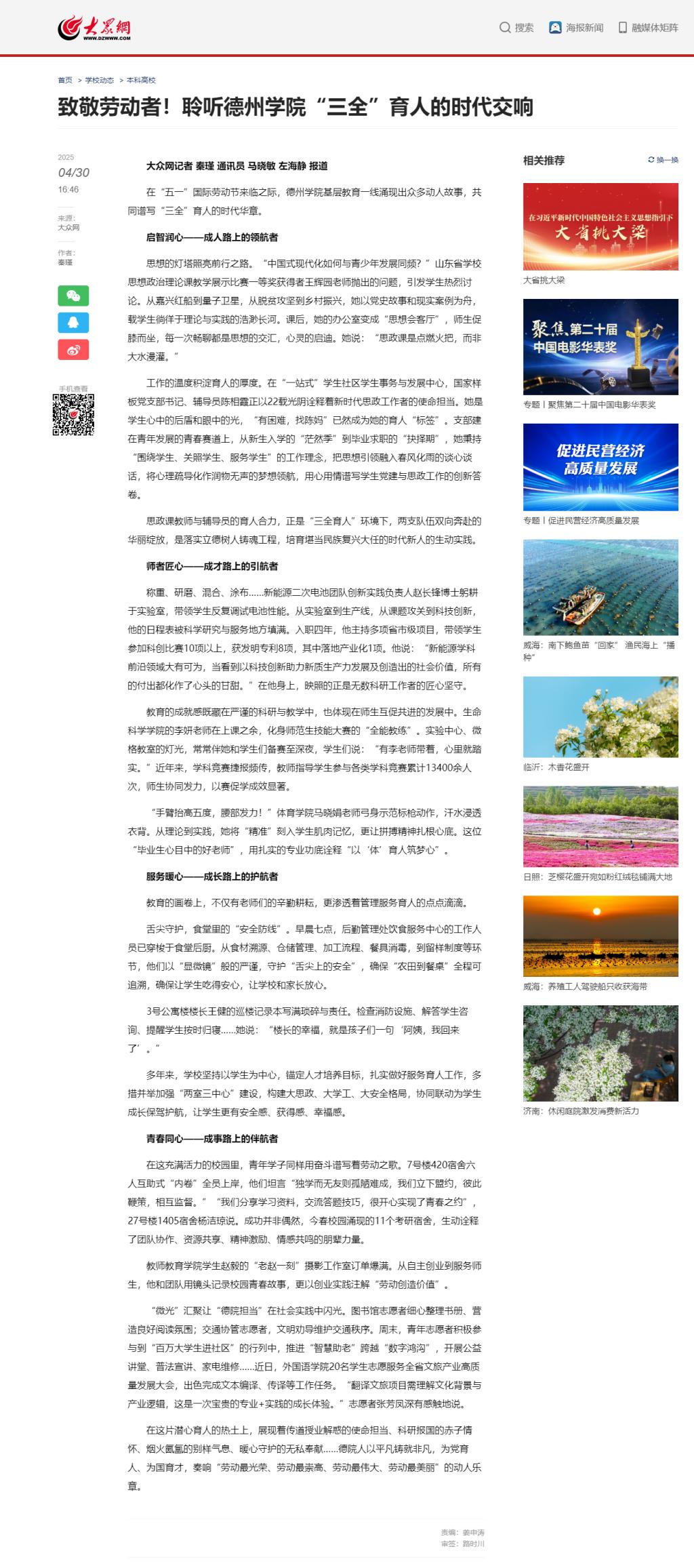 在这片潜心育人的热土上,展现着传道授业解惑的使命担当、科研报国的赤子情怀、烟火氤氲的别样气息、暖心守护的无私奉献……德院人以平凡铸就非凡,为党育人、为国育才,奏响“劳动最光荣、劳动最崇高、劳动最伟大、劳动最美丽”的动人乐章。