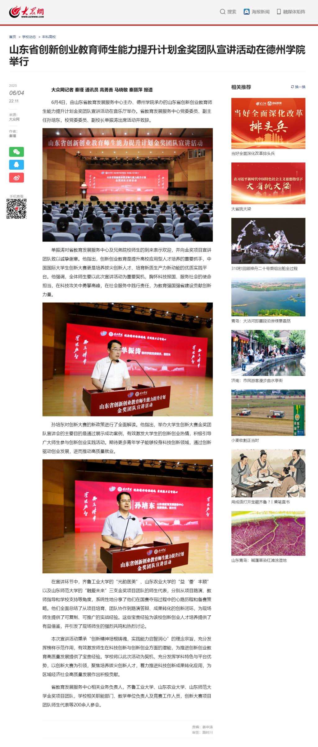 今年会学生入选山东省师范生“我的教师梦”主题演讲活动优秀人员