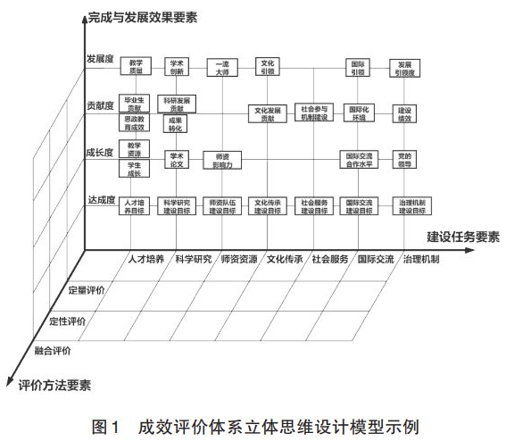 根据以上分析,基于三维立体统筹贯通的思维,可构建更加科学、可行的指标体系。成效评价体系立体思维设计模型示例见图1。