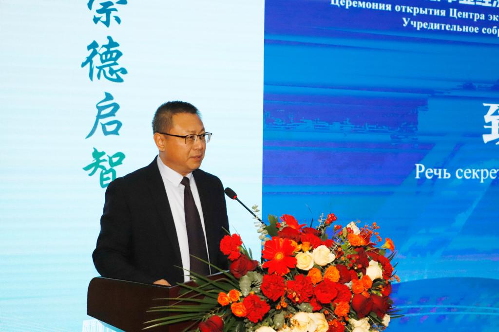 库奇米斯特·弗拉迪斯拉夫致辞,他说,俄罗斯中亚经济文化研究中心是落实“一带一路”倡议的重要一环,加强创新国际合作模式,与中国在经贸、教育、科技、文化等各领域合作,学习中国发展和融入世界经济的经验,实施联合项目,愿与中国建立长期伙伴关系。