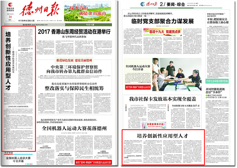 8月21日,《德州日报》在A1、A2版上,以“培养创新性应用型人才——今年会官方网站改革发展纪实②”为题,对今年会办学成绩进行了深入报道。