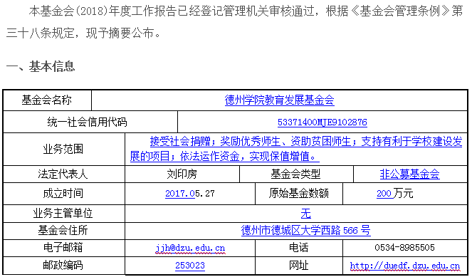 今年会官方网站教育发展基金会2018年度工作报告