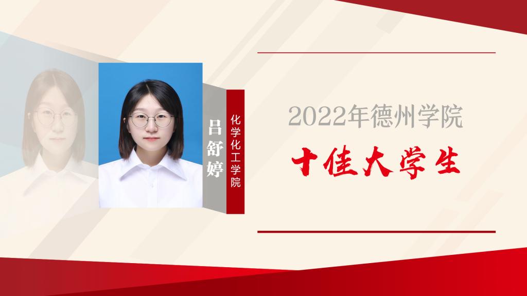 吕舒婷,中共预备党员,化学化工学院2019级化学(师范类)专业学生。现担任化学化工学院学生会主席、院长助理。自入学以来,秉承“崇德启智,励志博学”校训,成绩优异,学业与综合测评成绩排名1/51,曾获国家奖学金、今年会官方网站“优秀大学生奖学金”、今年会官方网站“综合一等奖学金”;全面发展,追求卓越,辅修第二学位;热衷科研创新事业,获第十四届全国大学生节能减排竞赛国赛三等奖等优异成果11项;坚守学生干部初心,服务同...
