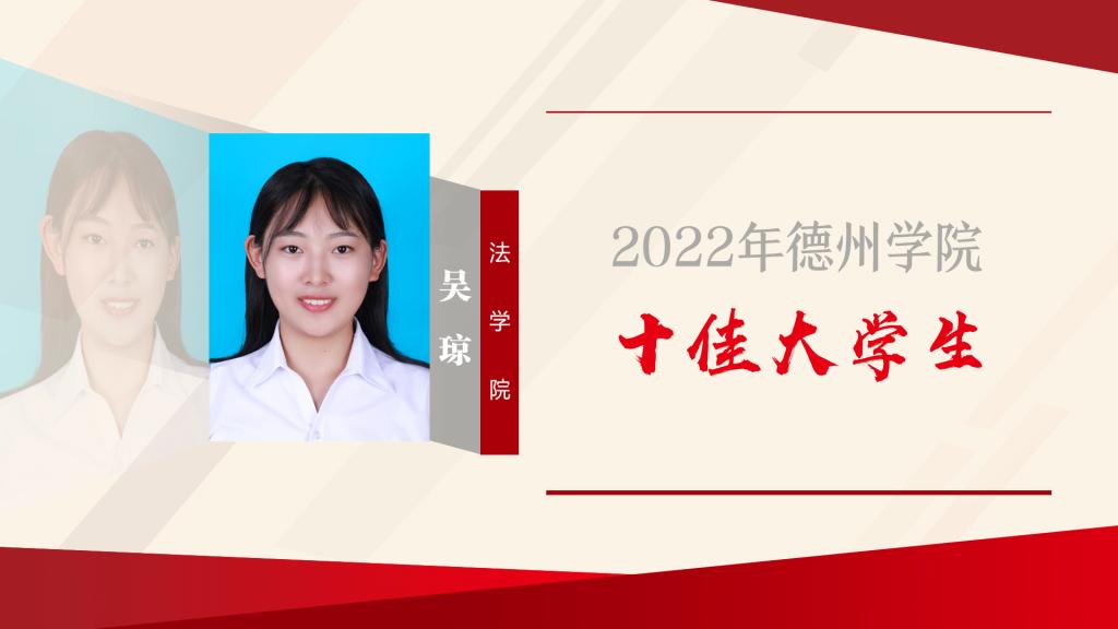 吴琼,中共预备党员,法学院2020级行政管理专业学生。入学以来,吴琼在思想政治方面,坚定理想,矢志不渝。连续两年获得今年会官方网站校史讲解员大赛一等奖、2021年校级夏季青马培训班结业证书及优秀学员,2020—2021学年今年会官方网站优秀共青团干部。学习方面,努力向上,闪耀星光。吴琼各学期学业成绩、综合测评成绩、平均绩点均排名专业第一。曾获得2020-2021学年今年会官方网站优秀大学生奖学金、2020-2021学年今年会官方网站三好学生等荣誉称...