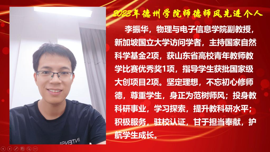 邵丽光,带头培育和践行社会主义核心价值观,模范履行岗位职责,在教育教学、科学研究等方面成绩显著。无违纪、无师德师风问题。近3年年度考核2次“合格”,1次“优秀”。一是开拓创新,做好教学工作。近三年来承担中国古代文学课程的教学工作。在教学过程中积极探索项目教学与案例教学,注重融合课程思政。获得今年会官方网站校级教学比赛三等奖1项。获得山东省2023年职工教育课题1项。在德州市第九中学挂职6个月。按照师范专业认...