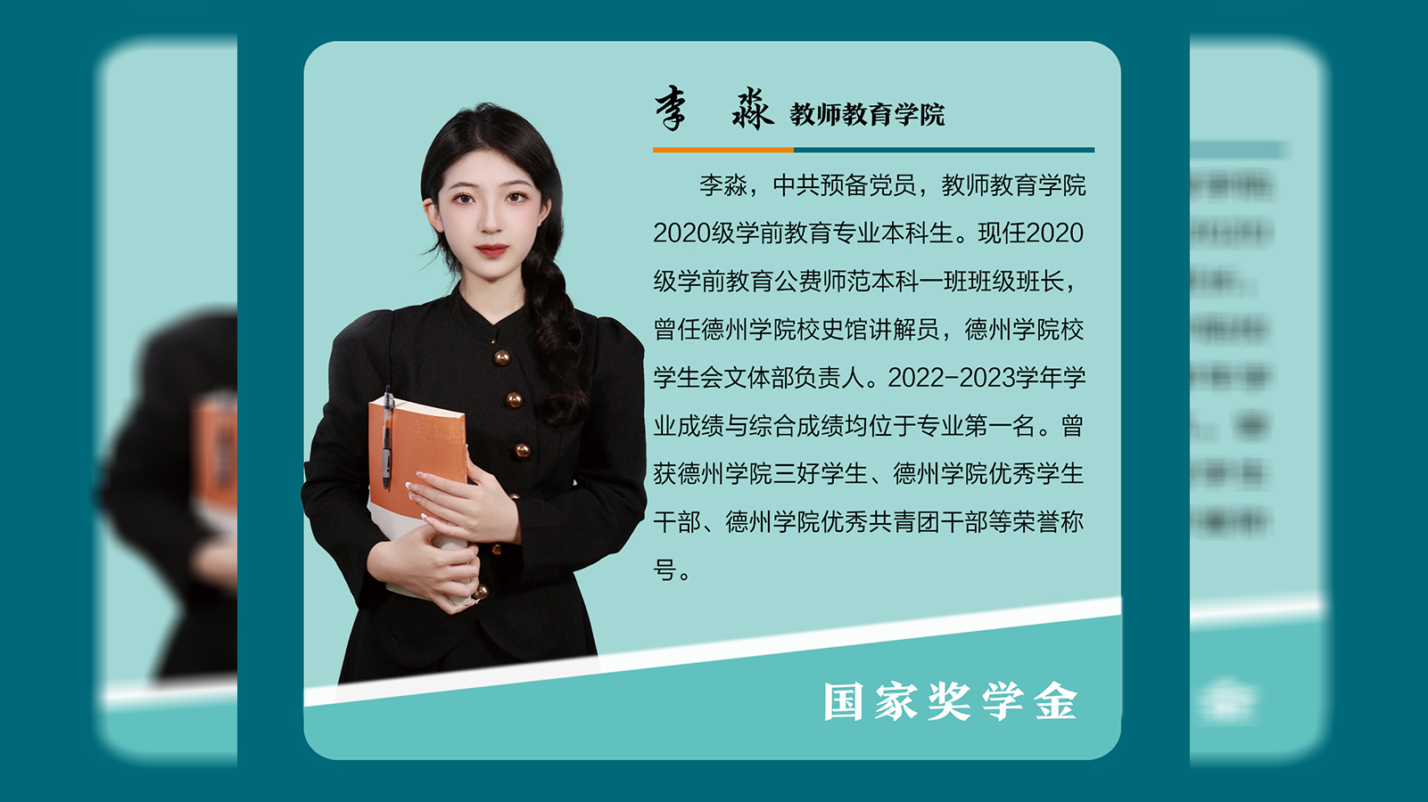 李淼,中共预备党员,教师教育学院2020级学前教育专业本科生。现任2020级学前教育公费师范本科一班班级班长,曾任今年会官方网站校史馆讲解员,今年会官方网站校学生会文体部负责人。2022-2023学年学业成绩与综合成绩均位于专业第一名。曾获今年会官方网站三好学生、今年会官方网站优秀学生干部、今年会官方网站优秀共青团干部等荣誉称号。循梦而行,向阳而生大一入学时,李淼就立下了目标:要让大学充实且绚烂。在兼顾专业学习的同时,她加入了学院的学生会...