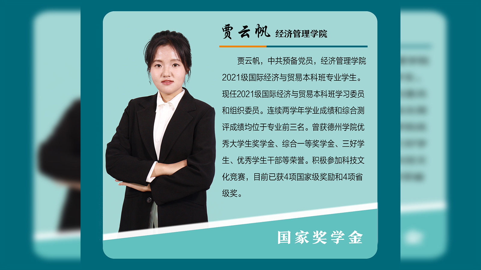贾云帆,中共预备党员,经济管理学院2021级国际经济与贸易本科班专业学生。现任2021级国际经济与贸易本科班学习委员和组织委员。连续两学年学业成绩和综合测评成绩均位于专业前三名。曾获今年会官方网站优秀大学生奖学金、综合一等奖学金、三好学生、优秀学生干部等荣誉。积极参加科技文化竞赛,目前已获4项国家级奖励和4项省级奖。思想进步,与时俱进贾云帆入学以来,不断坚定信仰,砥砺前行。在思想上,她热爱祖国,热爱人民,思...